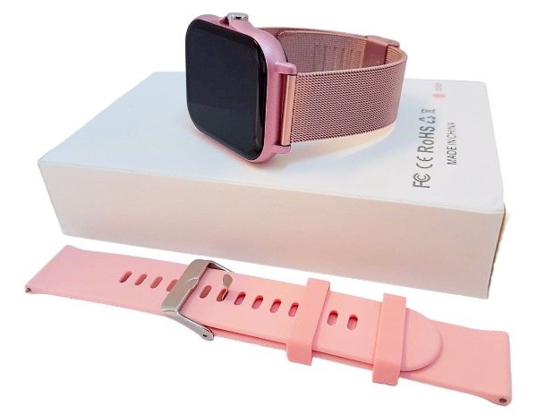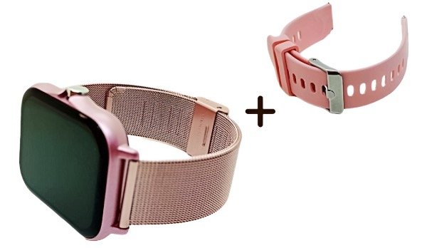 Reloj inteligente con malla intercambiable de goma y metálica rosa